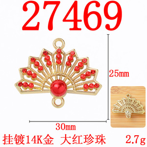 复古合金挂件双吊珍珠扇子古风彩色蝴蝶系列合金配件项链diy配件