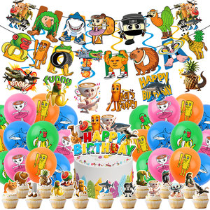 Tung Tung Sahur美国山海经生日派对装饰 Tralalo木棍人拉旗气球