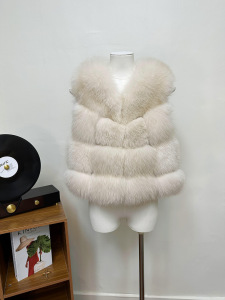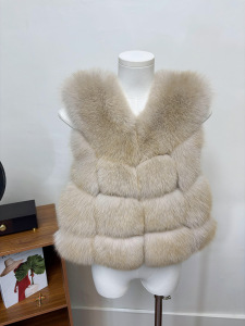 月光奶狐同源版 十三X狐狸背毛拼接青果领流动感狐狸毛马甲皮草女