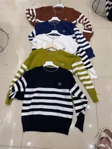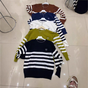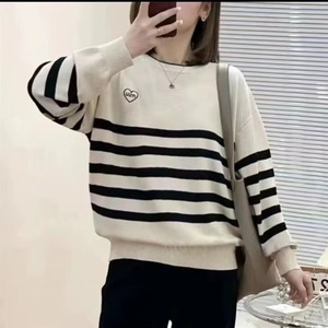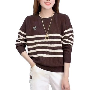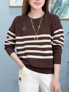 2025秋冬新款韩版宽松显瘦条纹打底上衣女休闲百搭套头长袖针织衫