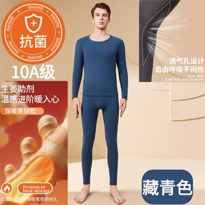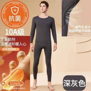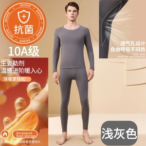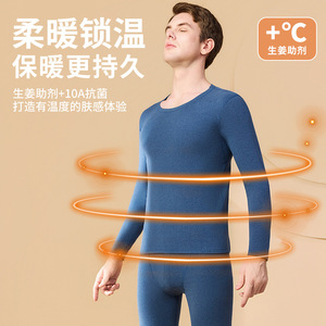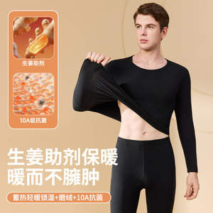 抗菌男士保暖内衣套装生姜助剂秋衣秋裤男秋冬加绒加厚打底衫批发