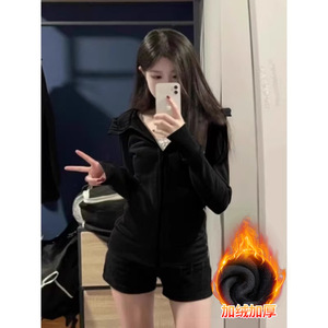 山东即墨卫衣上衣女秋冬休闲高街羽绒内搭运动帽衫秋季显瘦外套