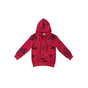 春秋高端连帽卫衣设计感红色花朵图案休闲套装显年轻潮流时尚女装