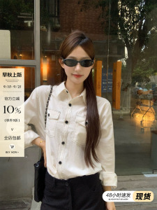 宋正恩白色宽松棉麻衬衫女秋季新款休闲老钱风高级感简约翻领上衣