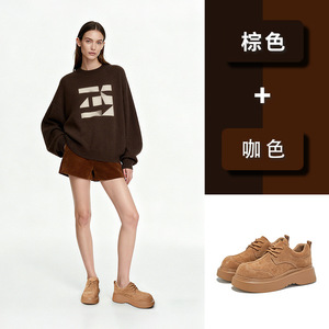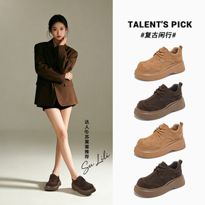 发泡底磨砂牛皮单鞋2025秋冬新款气质复古小白鞋百搭休闲时装女鞋