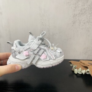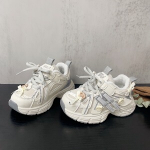 儿童洋气可爱小花加绒老爹鞋2025冬季新品女童舒适轻便宝宝运动鞋