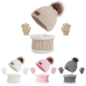 跨境欧美儿童帽子围巾手套三件套秋冬新款单球宝宝帽子