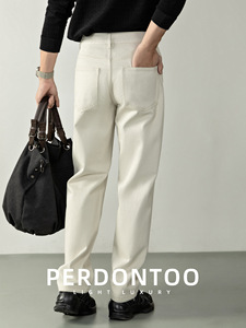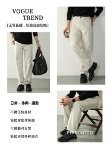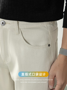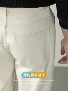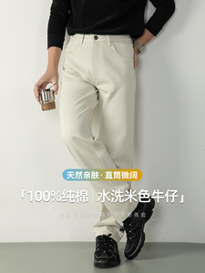 【100%纯棉】高级水洗米色微阔牛仔裤男时尚百搭直筒长裤秋冬2025
