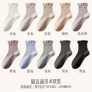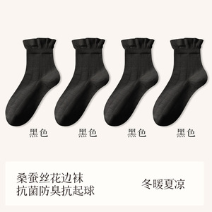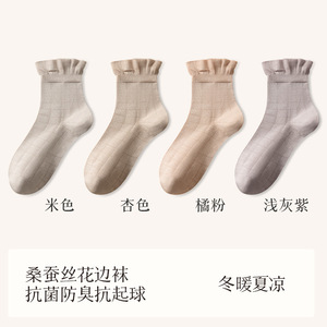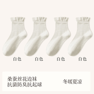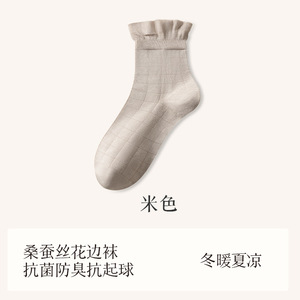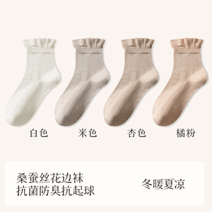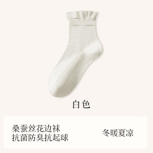 秋冬新品桑蚕丝袜子女中筒袜松口月子袜堆堆袜小白袜诸暨袜子批发
