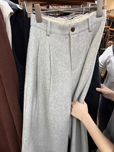 CHAO级推荐!韩系灰色阔腿裤女秋冬高腰宽松百搭毛呢休闲长裤