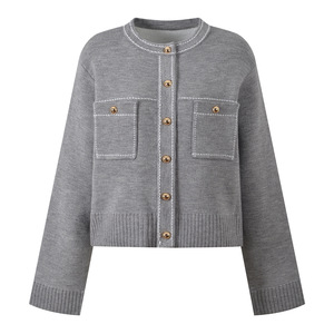 2025秋冬新款小香风明线灰色气质时尚通勤百搭短款圆领开衫外套