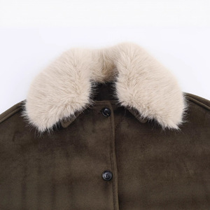 ZA速卖通爆款跨境外贸欧美风女装混纺人造皮草领口夹克外套