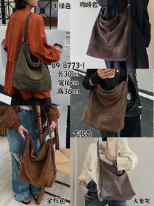 Jennie同款秋冬麂皮托特包韩系慵懒风大容量单肩包通勤复古斜挎包