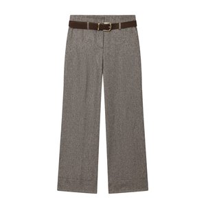 PB&ZA女装2025年秋季新款通勤风配腰带人字斜纹长款直筒裤1478295