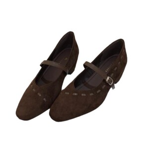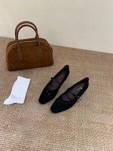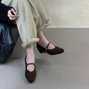 复古方头法式晚风复古绒面浅口单鞋女春秋新款韩版气质一字扣鞋
