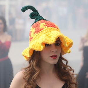万圣节搞怪南瓜花朵帽新款可爱手工针织帽秋冬加绒加厚保暖钩针帽