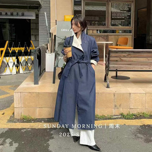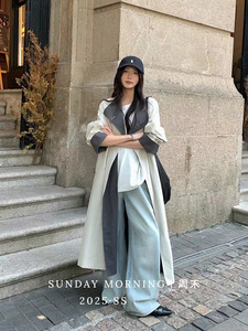 极简风衣女外套2025秋新款慵懒风中长款休闲立领撞色小个子大衣