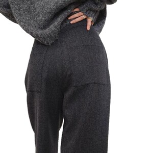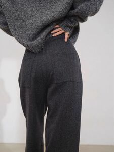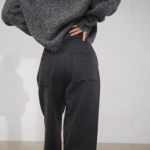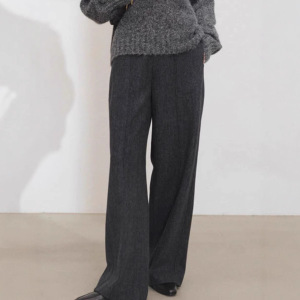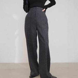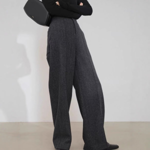 秋冬高腰垂感宽松显瘦直筒长裤格雷系深灰色毛呢西装阔腿裤女