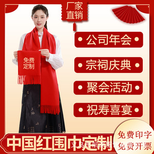 围巾定制logo印字刺绣中国红大红色订图案聚会活动公司年会红围巾