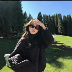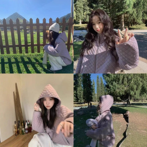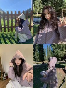 张贝贝 90新国标白鸭绒超轻菱格连帽立领羽绒服宽松显瘦保暖