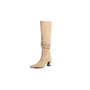 粗跟高跟及膝靴女骑士靴子秋冬新款绒面尖头高筒靴女堆堆长靴女靴