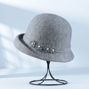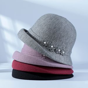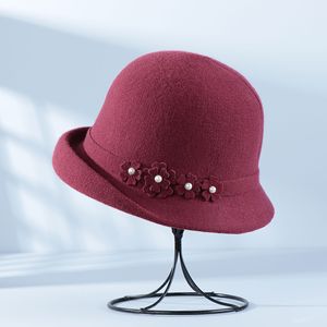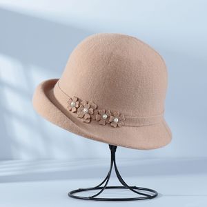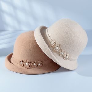 秋冬季新款法式卷边礼帽保暖时尚百搭花朵盆帽女户外旅游针织帽子