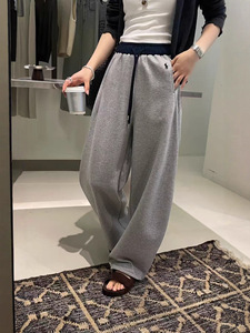 美式撞色抽绳拼接弯刀卫裤女2025秋季新款高腰休闲阔腿运动裤子