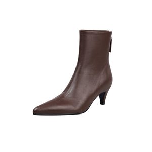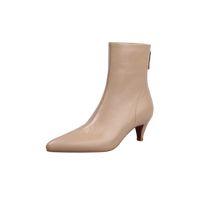头层牛皮极简风显瘦秀气尖头瘦瘦靴2025秋冬细中跟杏色真皮短靴女