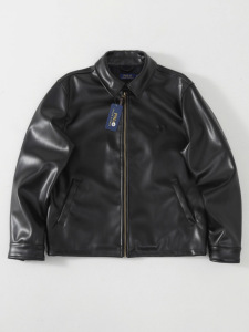 Polo RL拉夫小马刺绣标拉链纯色翻领长袖皮衣单夹克 男女情侣款