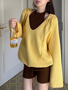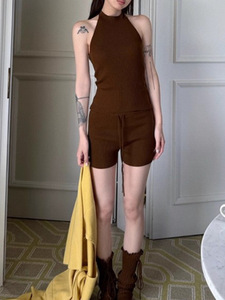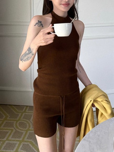 挂脖无袖针织吊带背心女早秋新款抽绳紧身显瘦弹力裤子套装