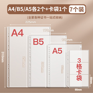 A4-马卡龙棕色【大中小拉链袋*6+卡片袋*3】