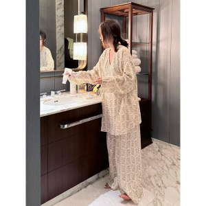 法式慵懒风温柔碎花棉纱睡衣女春秋季新款大码长袖长裤家居服套装