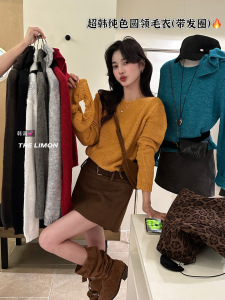韩系2025秋冬新款慵懒软糯圆领保暖毛衣女宽松显瘦百搭针织上衣