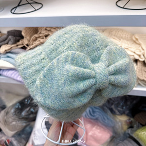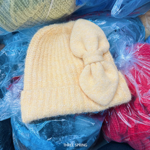批发韩国2025年秋冬新款韩系甜美蝴蝶结针织帽防寒保暖包头毛线帽
