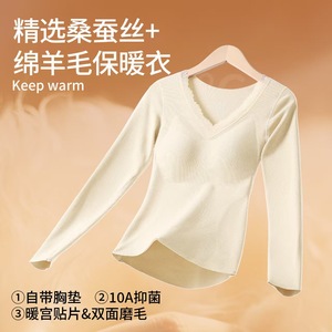 7A羊绒保暖内衣女加绒加厚秋衣秋裤套装2025秋冬季新款带胸垫上衣