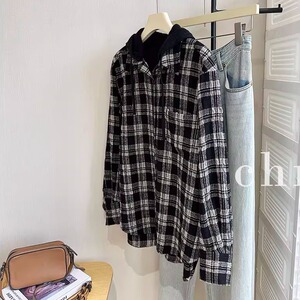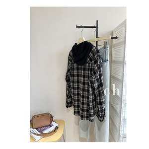 轻松穿出时髦感 质感肌理感格子可拆卸连帽衬衣