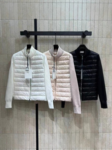 2025新款羽绒服女装拼接羊毛针织开衫短款立领白鸭绒秋季薄款外套