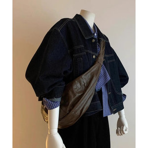 韩版宽松短款深蓝色丹宁风休闲牛仔外套2025秋新款复古夹克上衣