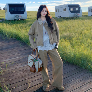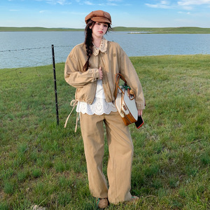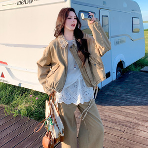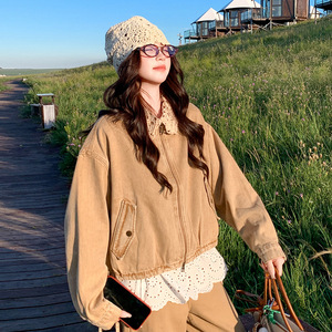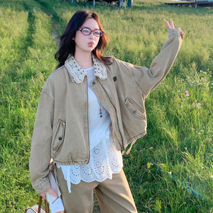 实拍复古感钩花翻领牛仔外套2025秋款时尚小个子宽松休闲短款夹克
