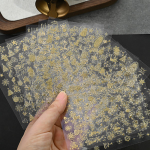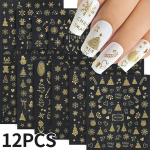 冬季12张圣诞节美甲贴纸轻奢烫金闪粉圣诞树雪人节日DIY手账贴纸