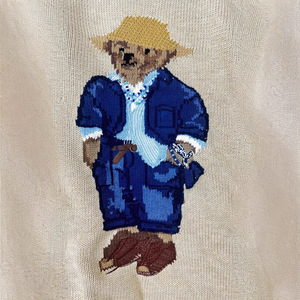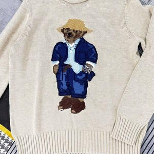25年早春宽松版型重工卡通草帽小熊圆领毛衣针织衫提花,手绣长袖