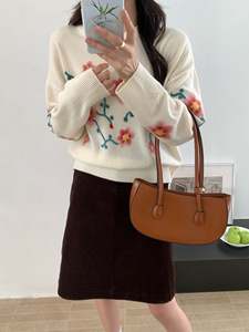 100纯羊毛衫女士25早秋冬季新款甜美穿搭刺绣针织打底衫毛衣女装