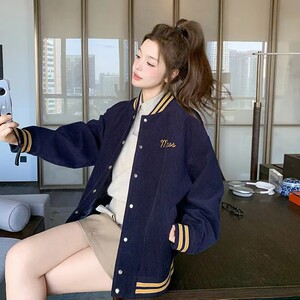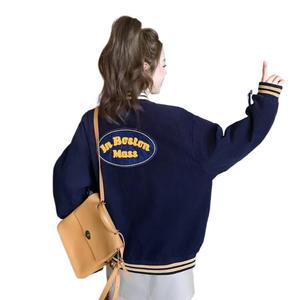 2025超火棒球服藏青色外套女秋冬新款学院风休闲百搭短款开衫