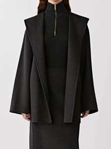 小禾女装2025冬季新款宽松羊毛羊绒双面呢中长款连帽大衣外套