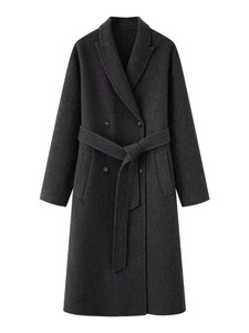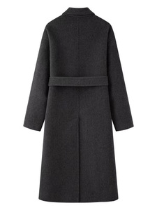 M**檬女装深灰色绵羊毛双面呢大衣长款女外套25秋冬新599A270682