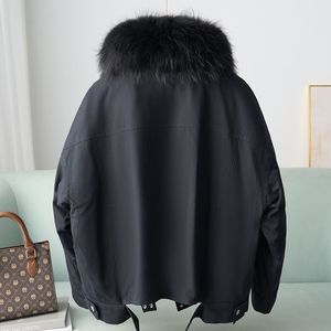 长期有货2025秋冬季新品貉子毛领皮草外套大码女装兔毛内胆派克服