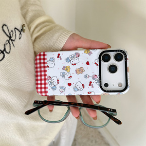 磁吸-红白格纹波点眨眼KT猫 单壳