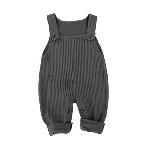 婴儿春秋季针织连体衣男宝宝纯色毛线背带裤女童可爱爬服休闲哈衣