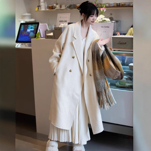十三行秋冬慵懒风翻领羊毛大衣女长款气质羊绒毛呢外套女装批发