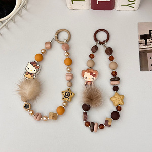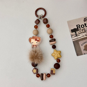 ins创意美式复古咖色系毛球kT星星手机链挂绳包挂件钥匙扣ccd挂饰